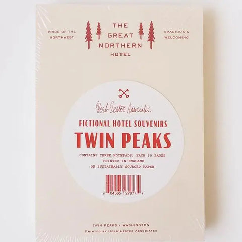 These hotels are out of reach to all, no matter their wealth. They exist only in the imaginations of their creators, and now in these paper pads. This Twin Peaks notepad Includes three 50-page The Great Northern Hotel notepads (150 pages total).